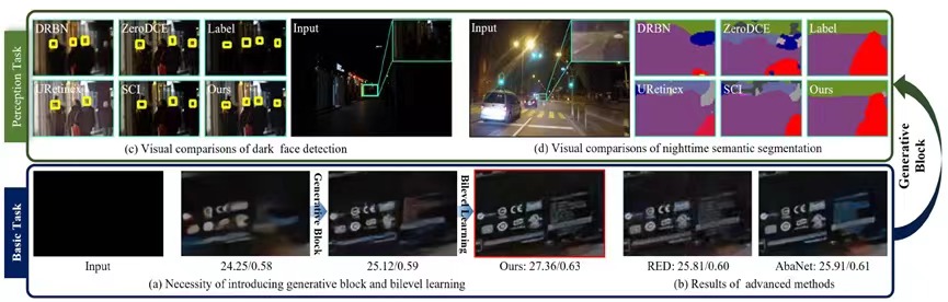 研究成果“Bilevel Generative Learning for Low-Light Vision”由硕士研究生刘英池、博士研究生刘铸、马龙博士、刘晋源博士、樊鑫教授与刘日升教授(通讯作者)共同合作完成。此项研究引入RAW域数据生成模块来连接多种低光视觉任务,解决了现有方法在RGB域图像信息受损和复杂场景建模的核心挑战,进而提出高效计算与高精度求解的双层学习策略,在低光图像增强、夜间目标检测与语义分割等任务性能显著提升。