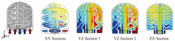 本团队在研究成果《Meshless Optimization of Triple Periodic Minimal Surface Based Two-Fluid Heat Transfer》(基于三周期极小曲面的无网格优化方法)中提出了一种基于三周期极小曲面(TPMS)的双流体热交换器的设计与优化算法,本算法基于所提出的隐式表示方法,将结构设计问题转换为优化控制双流体空间拓扑及几何参数函数的问题。同时,通过改进GCMMA优化求解器加速优化设计。经优化后的热交换器具有参数可控、全连通流体通道、分隔壁光滑、换热面积大、机械性能良好等优点,并且适用于涉及两种以上介质的设计优化问题。该成果由姜钰博士,胡江北博士后,王胜法副教授,雷娜教授,罗钟铉教授和刘利刚教授(中国科学技术大学)共同合作完成。全文链接:https://www.sciencedirect.com/science/article/pii/S0010448523000866