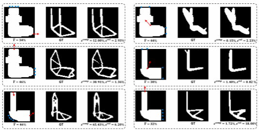 镂空技术是3D打印制造领域一种最简单直接的轻量化策略,然而,在3D打印制造过程中,封闭腔体内的材料残留会对结构的制造质量和材料使用效率等有负面的影响。为了解决该问题,本团队在研究成果《Differentiable Channel Design for Enhancing Manufacturability of Enclosed Cavities》(适用于三维打印封闭空间的可微通道设计)中提出了一种有效的通道设计方法,可以实现高效的材料自动排放。该方法基于可微的通道框架能够快速优化位置、长度和倾斜角等参数,在保证结构力学性能的同时最大程度上改善残留材料的排出效率,适用于批量生产和自动化制造。该成果由杨钧硕士、胡江北博士后、王胜法副教授、雷娜教授和罗钟铉教授共同合作完成。全文链接:https://www.sciencedirect.com/science/article/pii/S0010448523000908