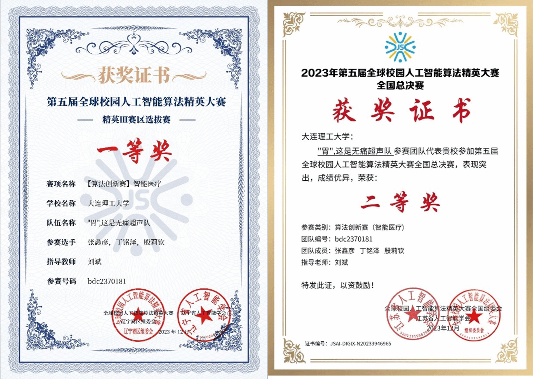 12月14日,第五届全球校园人工智能算法精英大赛全国总决赛在江苏河海大学江宁校区圆满落幕。来自全国169所高校的725支参赛团队,共785名指导老师、2117名参赛选手参加了比赛。我院参赛项目--“经腹胃超声及胃癌多模态智能诊断系统” 经过初赛、区域赛、国赛的激烈角逐,继获得东北赛区一等奖基础上,成功斩获全国二等奖的佳绩。
