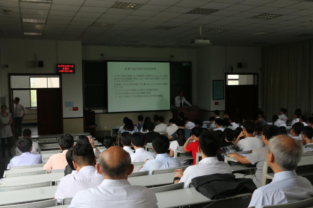 参观了整个校园之后,学院领导与大连日本商工会代表在教学区C区504举行交流会,大连理工大学校长助理、国际信息与软件学院院长罗钟铉,日方院长大久保英嗣,常务副院长樊鑫,副院长徐胜君以及学院院长助理林林参加了与日本客人的交流。