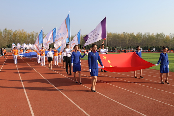 上午八时三十分,伴随着激昂的《运动员进行曲》,检阅队伍踏入会场,接受大会主席团的检阅。首先,迎面走来的是国旗方阵,护旗手手持五星红旗,步伐坚定地走过主席台。紧随其后的是院旗、系旗和校旗方阵,象征着开发区校区与大工一脉相承,连理同心。随后的花束方阵表达了校区对学校的美好祝愿;社团文化和专业术语旗方阵展现了丰富的校园生活和校区独特的IT文化氛围。随后是各级队方阵表演。方阵表演整齐划一,异彩纷呈;教工方阵同样意气风发,别具一格。