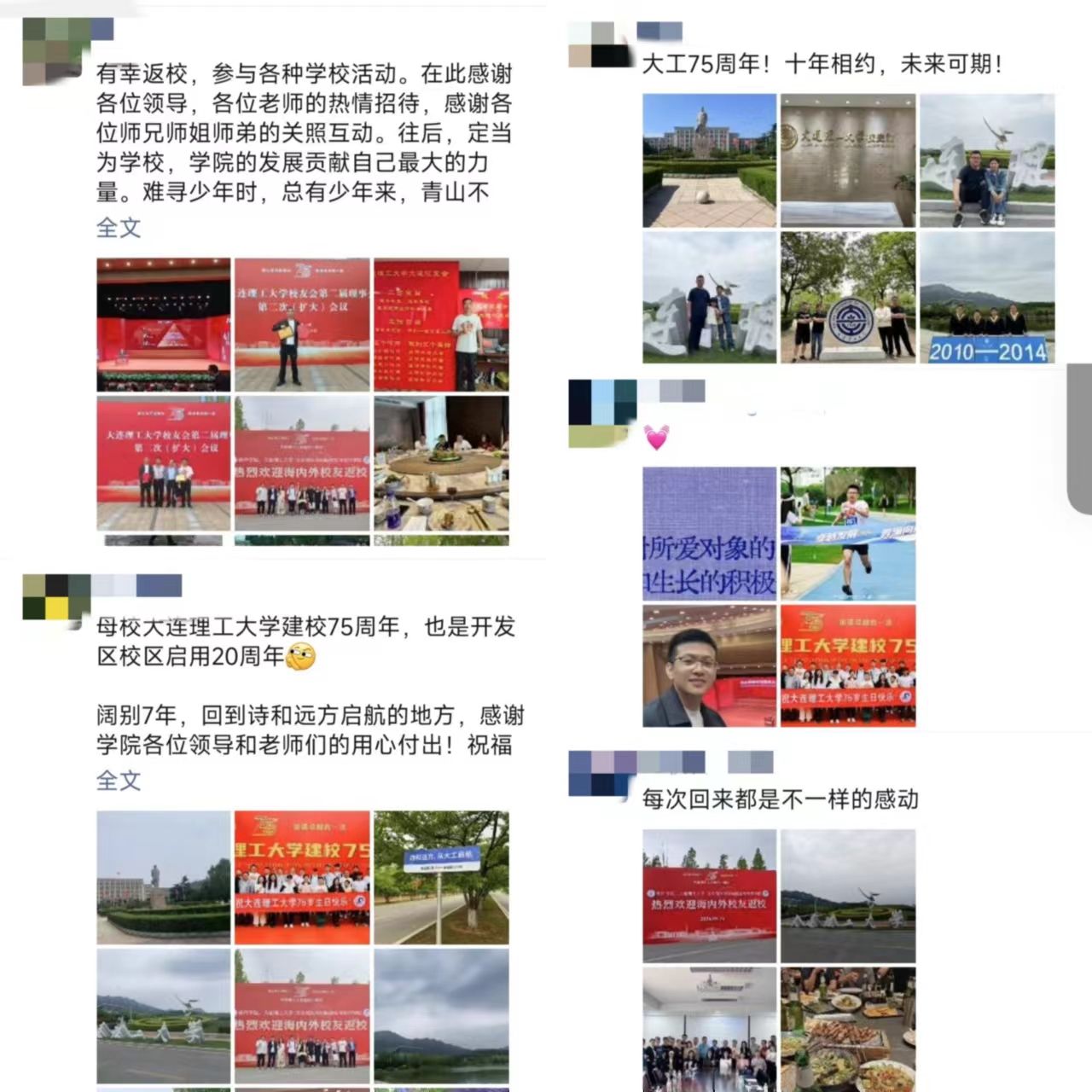 岁月如歌75载,重聚母校回忆青春。和风煦日,春意盎然。5月24日-26日,学院海内外校友思母校而情意切,携手共赴母校75周年校庆盛会,为母校庆生。学院累计300余名校友报名返校,在凌水主校区与开发区校区共同见证母校的重要时刻。让我们一起回顾各位亲爱的校友回“家”团聚时的精彩瞬间!