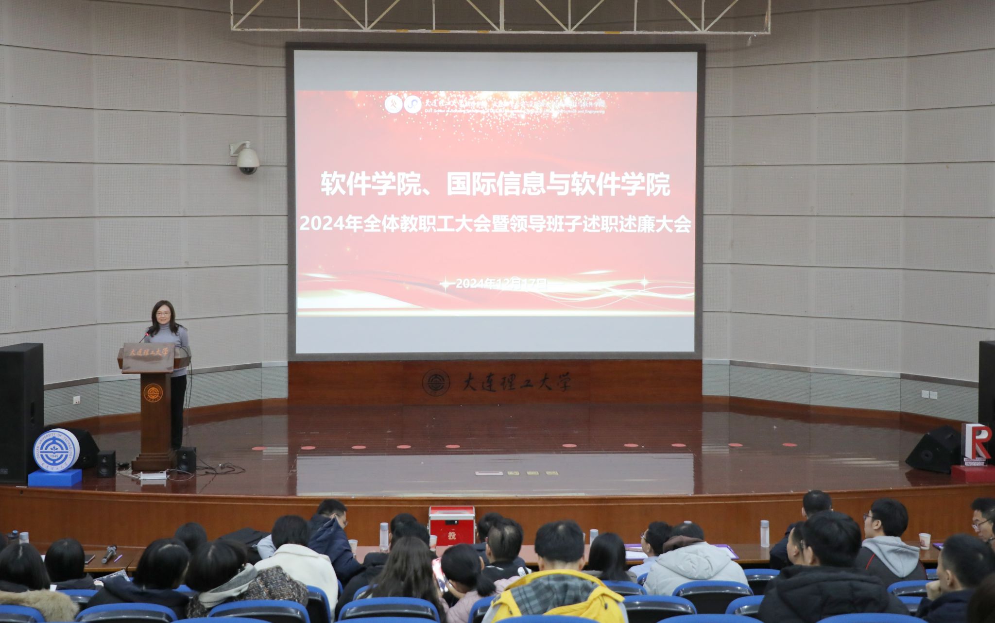 12月17日下午,软件学院、国际信息与软件学院2024年度全院教职工大会暨领导班子述职述廉大会在开发区校区图书馆报告厅举行。学院领导班子成员及全体教职工参加会议。会议由学院党委书记雷娜主持。