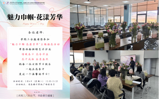 为庆祝三八妇女节,营造温馨美好的节日氛围,软件学院、国际信息与软件学院于2025年3月4日举办了以 “魅力巾帼,花漾年华” 为主题的插花活动,吸引了老师们踊跃参与。活动由学院工会主席辛永亮老师主持,并特别邀请艺术教师孙舒老师现场指导。