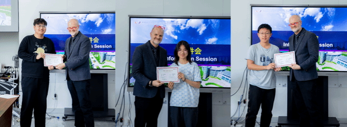 研讨会圆满结束后,开班仪式随即举行。在仪式上,布里斯托大学代表团与开发区校区的学生们进行了近距离的互动交流。学生们热情洋溢,积极提问,就布里斯托大学的专业优势、申请流程、校园生活等方面进行了全面而详细的咨询。代表团成员耐心倾听,逐一解答。在互动交流环节之后,布里斯托大学校长助理Charl FJ Faul亲自为学生颁发了项目录取通知书。