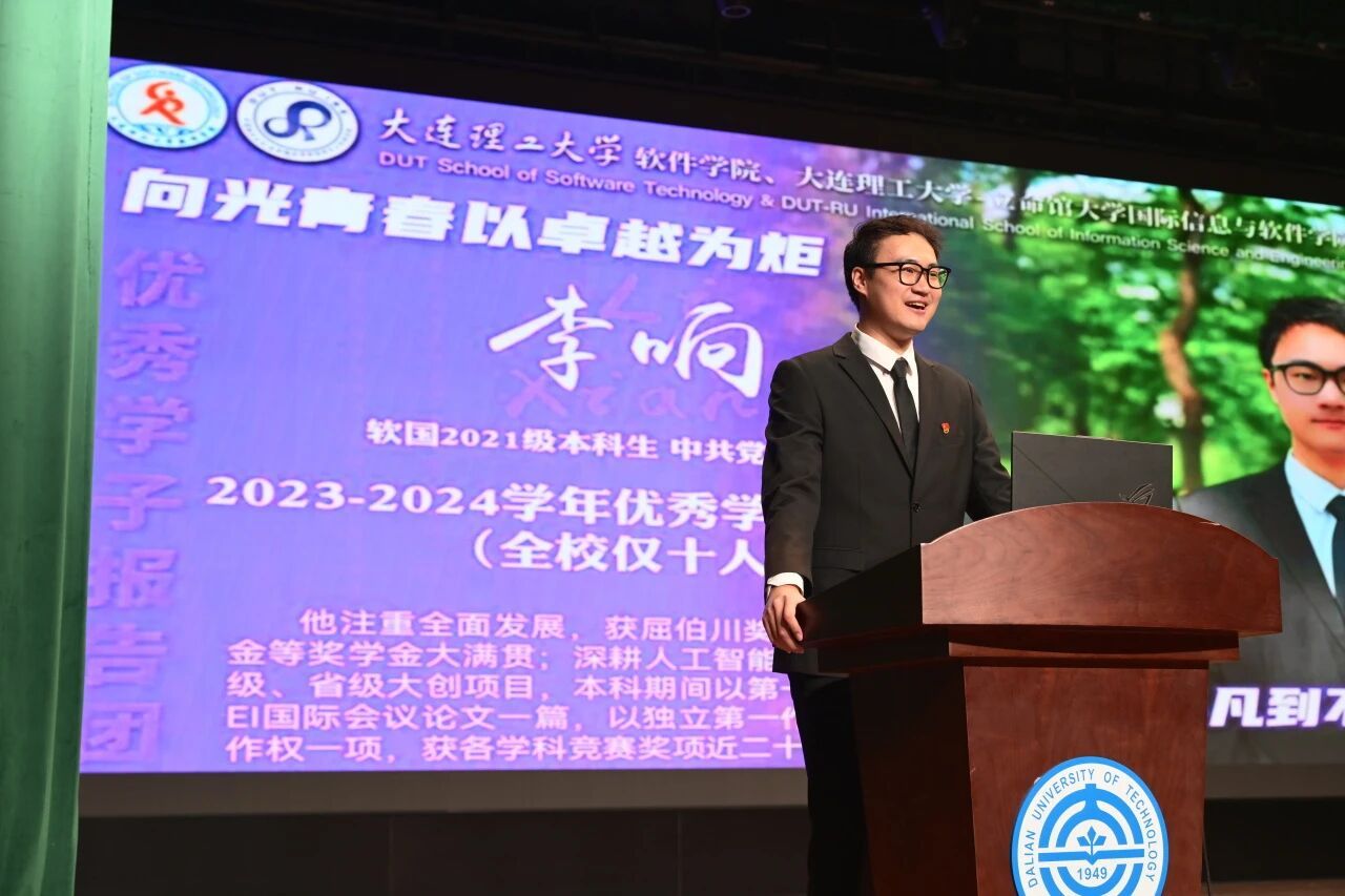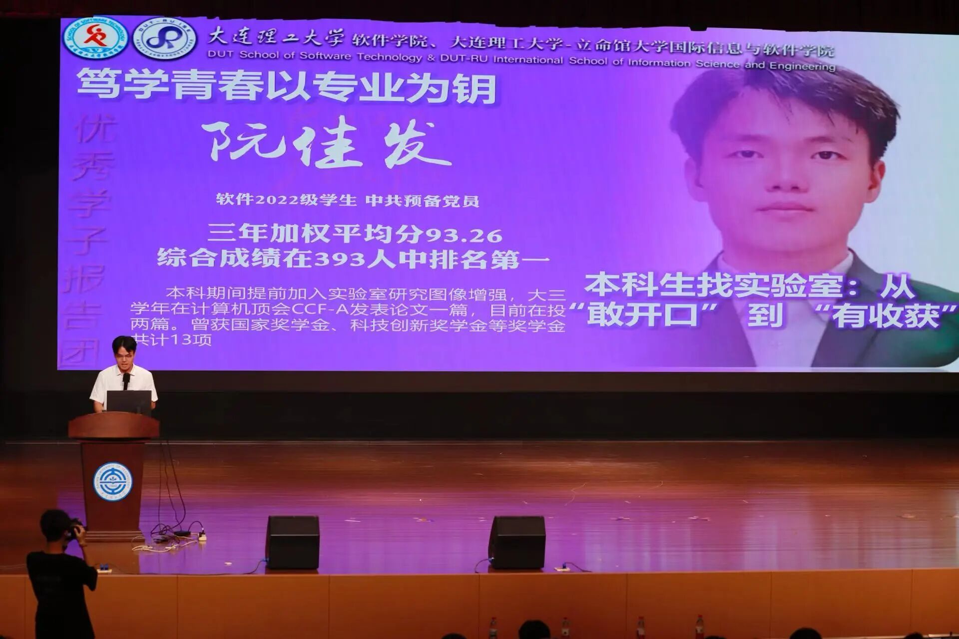 星河璀璨,奋斗为光。从“三更灯火五更鸡”的勤勉,到“长风破浪会有时”的坚定,一批批优秀学子书写了成长华章。如今,25级新同学的到来,为这片沃土注入了全新活力。为帮助大连理工大学软件学院、国际信息与软件学院2025级的新生们锚定大学目标、明晰前行方向,9月28日18:00,学生文化中心剧场举办了优秀学子报告团。学长学姐们结合“千淘万漉虽辛苦,吹尽狂沙始到金”的奋斗经历,分享了专业学习、竞赛备赛、未来规划的实用技巧。