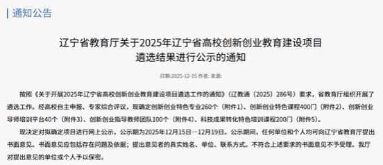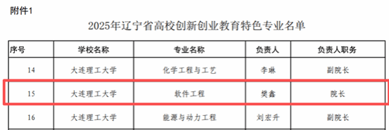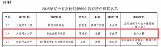 近日,辽宁省教育厅公布了2025年辽宁省高校创新创业教育建设项目的遴选结果,我院软件工程专业获评创新创业特色专业,马瑞新老师的《系统分析与设计》获评创新创业特色课程。