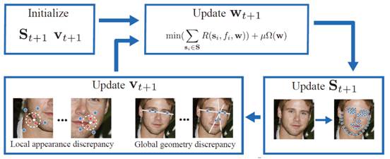 人脸对齐是人脸分析中的重要环节,该团队的研究成果“Self-Reinforced Cascaded Regression for Face Alignment”针对人脸特征点回归过程中需要大量人工标定训练样本的问题,提出了一种半监督的人脸特征点检测算法训练框架,通过引入一种局部纹理约束和一种基于特征数的几何约束实现了从小规模训练样本生成大规模训练样本的半监督学习。该方法有效克服在只有少量训练样本情况下,回归算法难以学习的问题。