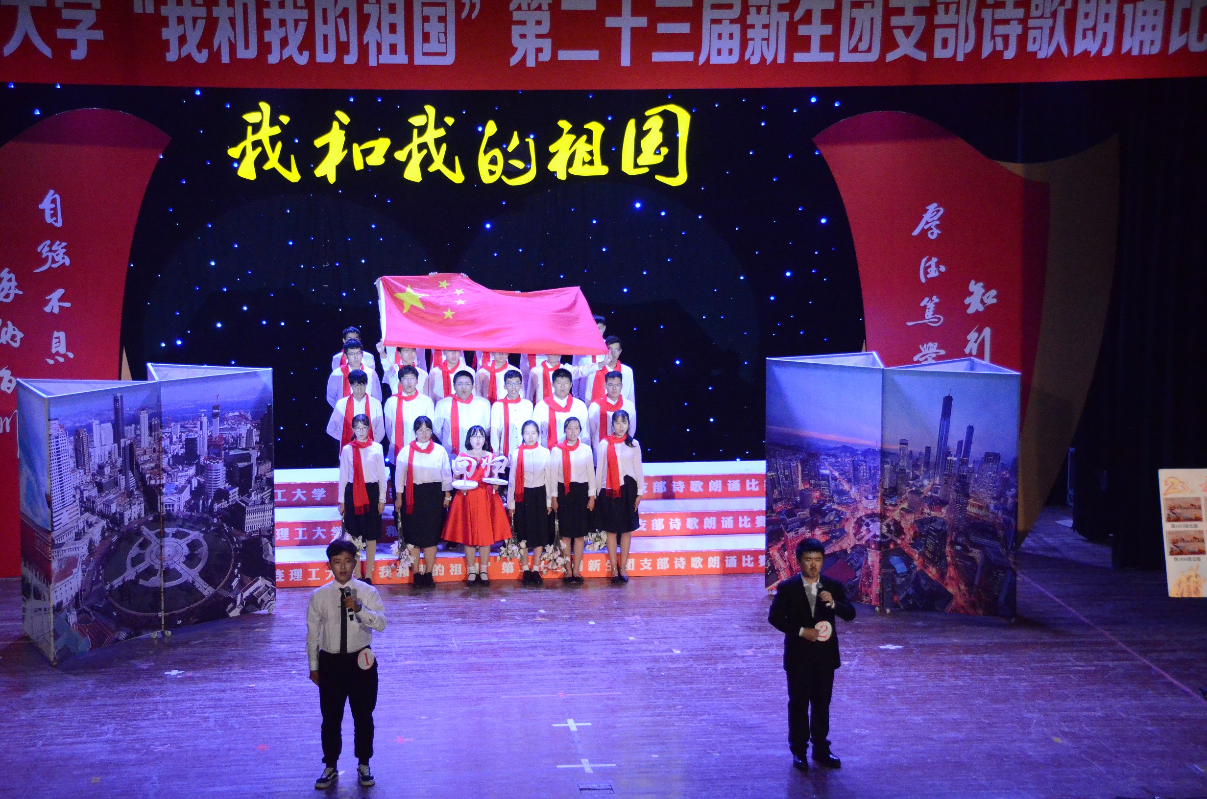 9月28日,大连理工大学第二十三届“我和我的祖国”新生团支部诗歌朗诵比赛决赛在山上礼堂隆重举行,软国1805班同学团结一心,力争上游,向大工人展现软国学子自强不息的风采,最终以94.527分的好成绩获得校三等奖。