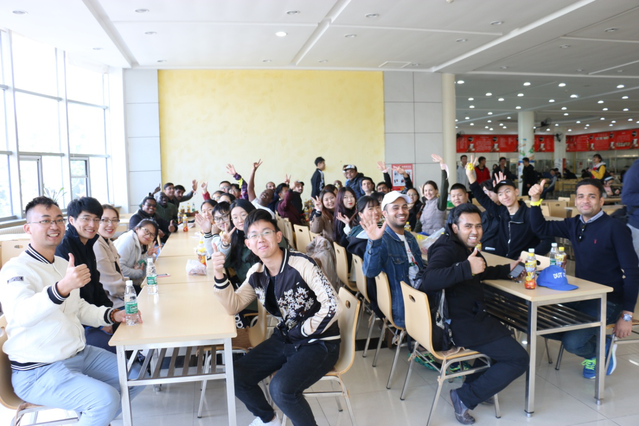 最后,留学生与志愿者们一同前往学校食堂,享受红薯午宴。食堂用收获的红薯做成了四种美食供同学们品尝,大家脸上都洋溢着幸福的笑容,对美食赞不绝口,整个活动在欢声笑语中圆满结束。