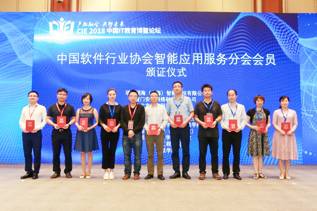 此次大会上还启动了“中国软件行业协会智能应用服务分会智能教育合作计划”,旨在联合国家示范性软件学院联盟、CSDN、中关村软件园等多个组织与机构,实施产教融合,积极推进人工智能教育合作计划,促进人工智能师资培养。大连理工大学开发区校区受邀加入了中国软件行业协会智能应用服务分会,李凤岐教授代表校区接受了由中国软件行业协会智能应用服务分会颁发的会员单位证书。