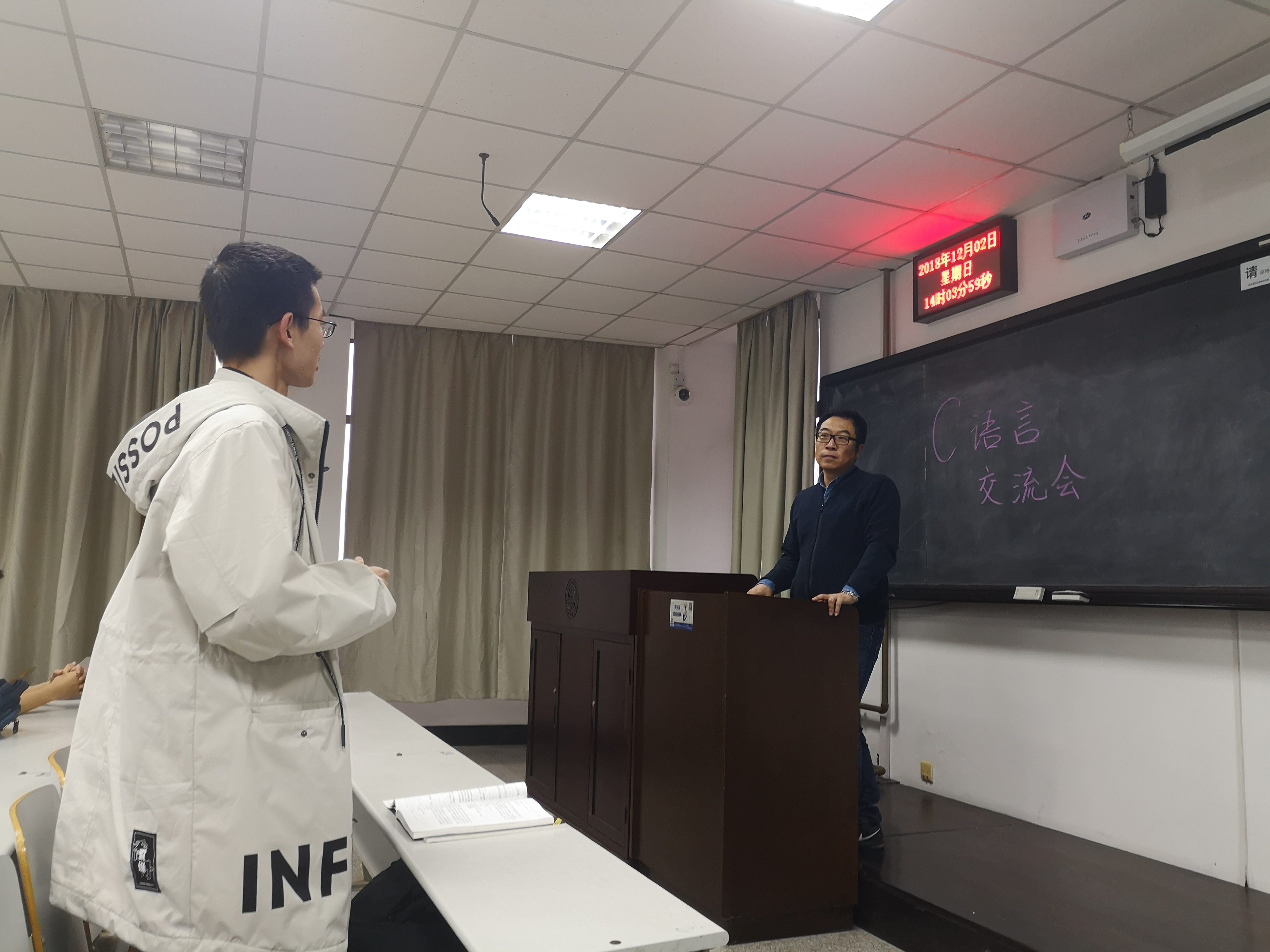 了解到同学们存在的问题后,林林老师一一回答并就这些问题提出建议。首先,林林老师认为最重要的事情是同学们学习C语言的态度要端正,进入大学之后同学们要适应大学教学方式学会自学,增加课外投入时间;其次,在学习计算机语言的过程中要注重实践,经常实践上机来加深理解,在自己动手操作的过程中逐渐积累经验;最后,林林老师向同学们解释学习C语言本身是为了了解计算机语言,让同学们更加了解底层知识,同学们应该从C语言最基础的语言开始为以后的技术学习打牢基础。
