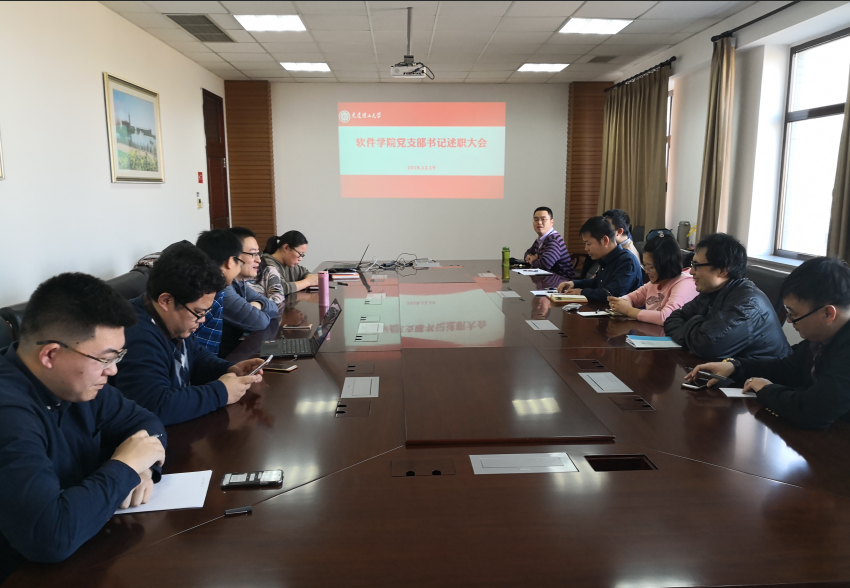 12月19日软件学院党委在综合楼五楼第一会议室召开了2018年党支部书记述职暨党建工作交流会。原软件学院党委8个教工党支部书记就2018年支部工作进行了述职,介绍了各支部一年来党建工作,总结优点查摆不足,新任党支部书记参会并交流了支部党建工作。国际信息与软件学院党委副书记兼副院长辛永亮主持会议。