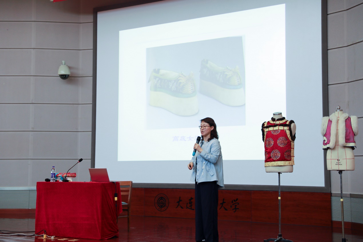 第二部分文化讲坛,我们很荣幸地邀请到了来自大连工业大学服装学院的曾慧教授作为我们讲坛活动的讲师。讲坛于5月10日周五18:00在图书馆报告厅如期开展,曾慧教授以“铿锵与玫瑰-满族服饰文化漫谈”为主题,生动形象地向我们介绍了十三兵甲与一字襟坎肩、八旗制度与八旗军服、美轮美奂的旗袍、独具一格的旗头与旗鞋等特色满族服饰文化。