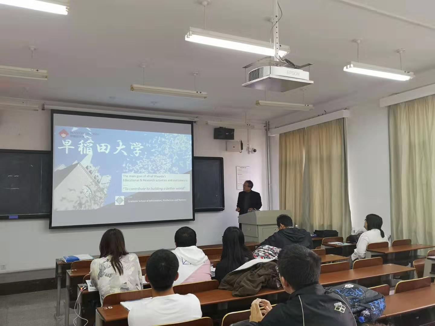 会上,渡辺孝博教授介绍了早稻田大学情报生产系统研究科的基本情况,另外还介绍了情报生产系统研究科的各个实验室、各个教授的研究兴趣和专业方向,为同学们留学方向的选择提供了参考。最后,教授就下发到每位到场同学手中的宣传册介绍了申请流程及考试要求。