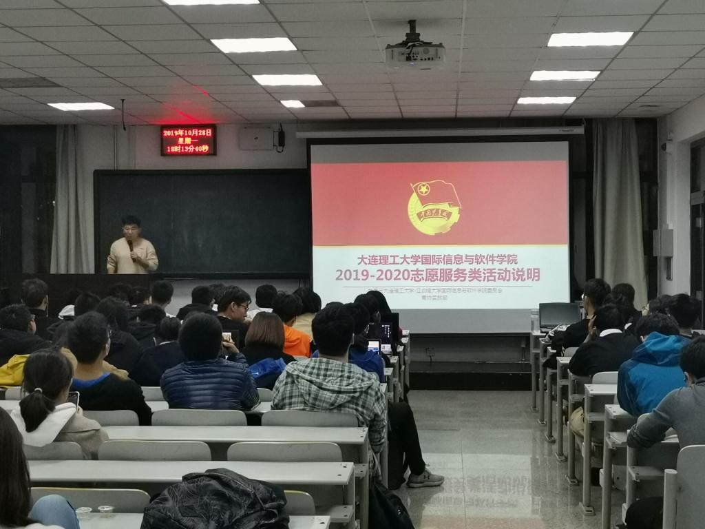 大会第二项,由青协实践部副部对大连理工大学国际信息与软件学院2019-2020志愿服务类活动进行说明。为了引领广大青年学生按照习近平总书记关于“勤学、修德、明辨、笃实”的“八字真经”要求,树立和践行社会主义核心价值观,将开展以“践行核心价值观·共圆伟大中国梦”为主题的各类志愿服务活动,并通过对各团支部参加志愿活动的情况进行审核及评分后进行排名评比。