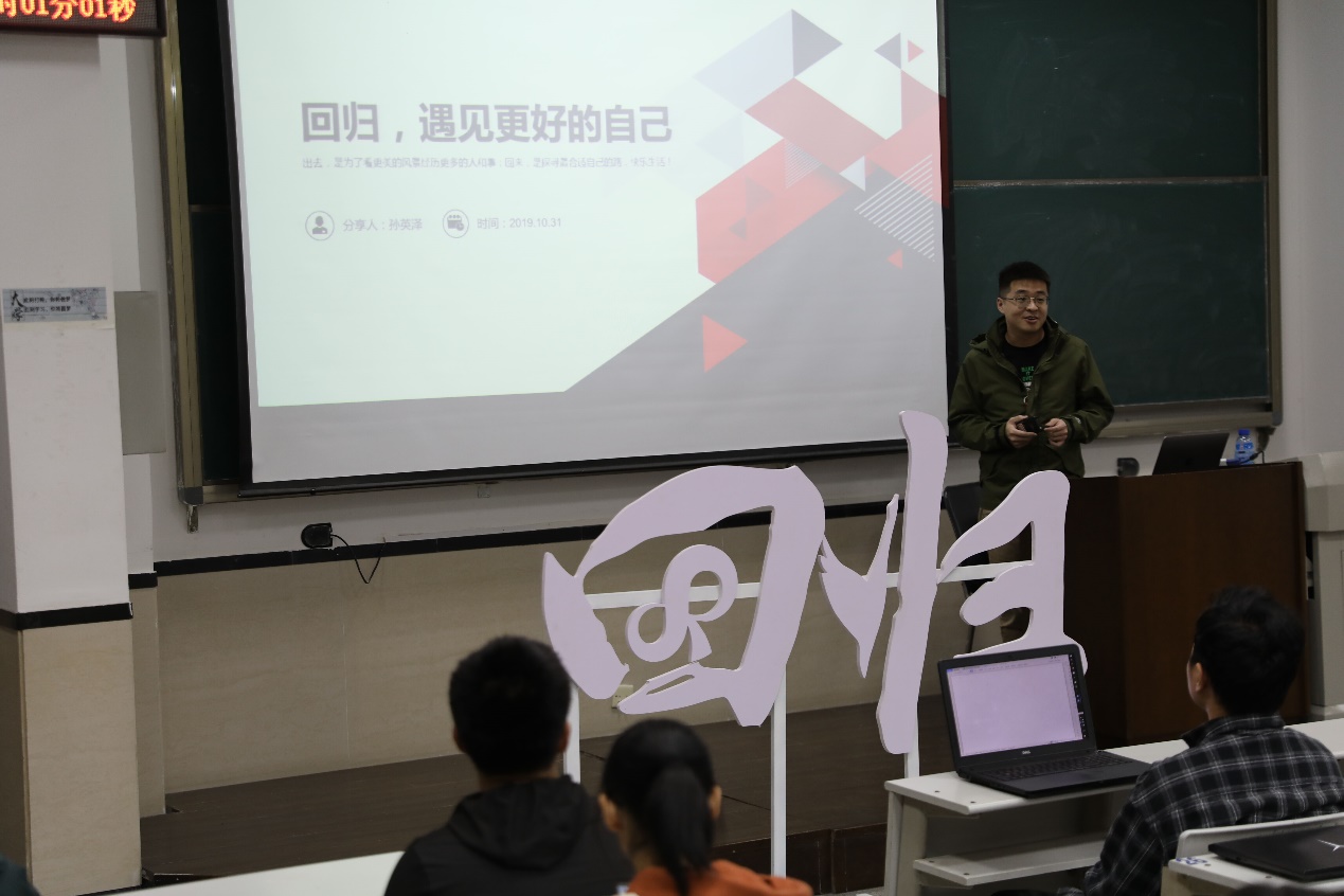金秋十月,碧空如洗,秋风微凉,心扉舒畅。10月31日晚6点,国际信息与软件学院在B102教室迎来了新学期的第二次“回归”系列讲座,本次“回归”讲座,我们荣幸地邀请到了软件学院的优秀毕业生——孙英泽学长。