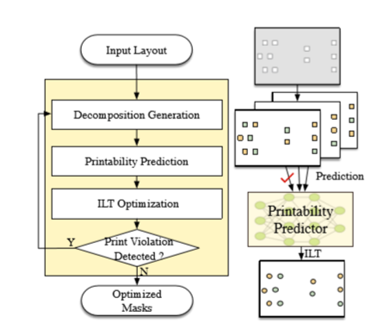 近日,我院几何计算与智能媒体技术研究所的一项研究成果Deep Learning-Driven Simultaneous Layout Decomposition and Mask Optimization被国际顶级设计自动化大会DAC(Design Automation Conference)录用。DAC是以电子设计自动化(EDA)和嵌入式系统及软件(ESS)为主题的国际公认的最顶尖学术会议,也是中国计算机学会(CCF)认定的A类会议。每年吸引全球知名的学者参与成果发布和技术讨论,近两年论文接受率维持在20%左右。