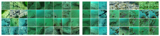 该数据集采集于真实海洋环境评测平台,该平台由国家自然科学基金委支持,由大连理工大学牵头、多家单位协作建立,是首个真实海洋环境中水下机器人目标抓取评测平台。其位于北纬39度的黄海外海海域,地理坐标为(N39:186; E44:625),靠近黄海的獐子岛。采集系统中位于海床上方0.5米处的22个防水摄像机安装在10米x 10米的方形框架上,摄像机的视角的最大景深在0.5~ 8米之间,拍摄时段为上午8点至11点和下午1点至下午4点的自然光环境中,水深由于周期性潮汐而在5至9米之间变化,不断变化的照明和水深会产生不同的色调。拍摄的视频超过250小时,涵盖了各种照明,景深,模糊度和色偏。且该地区拥有天然海洋生态系统,其中包含丰富的海洋生物,包括鱼类,海胆,海参,扇贝等,由此该平台已于2017~2019连续三年支持承办国家自然科学基金委主办的水下机器人目标抓取大赛。
