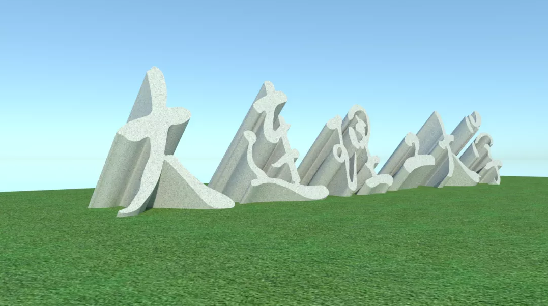 第一种设计方案采用投影理石的方式,石材字体搭配倾斜的感觉,硬度高、不变形、不磁化是该方案最显著的优点,浓郁的厚重感和强烈的立体感使雕塑在美观的同时凸显着高档次。