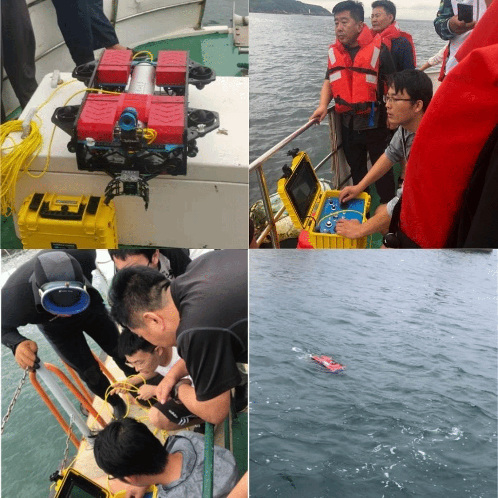水下机器人在近海区域下水,从机器人视角对海况进行了勘察和数据收集,作业过程也引来了当地潜水员的关注,从潜水员实际操作的经验与水下机器人作业姿态进行比较和交流,探讨如何解决机器人在水下应对洋流及其他复杂海底环境影响等问题,以期尽早实现用机器人代替人工高危性作业项目,实现人机协同甚至机器人自主高效作业的目标。