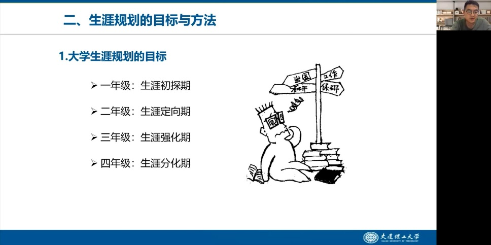 11月10日下午,学院党总支副书记兼副院长于昊老师与全体大一新生在线上开展主题交流,从大学生涯规划切入,为同学们讲解大学生常见的生涯发展问题,并向大家介绍有关生涯发展的理论与方法,帮助学生们建立生涯发展观,有效避免因对未来发展感到迷茫可能导致的若干问题。
