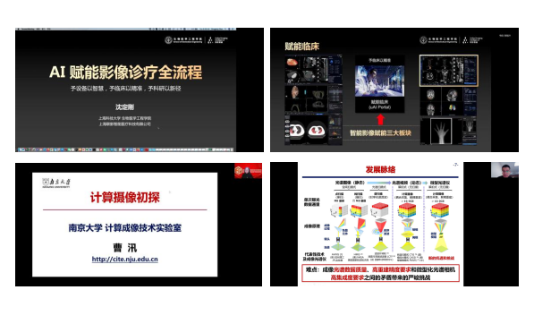 国际信息与软件学院院长樊鑫教授致辞,对软件学院近年来的建设发展进行总结和回顾。上海科技大学生物医学工程学院沈定刚教授以“AI在影像诊疗全流程”为题目,从智能影像赋能下的设备、临床、科研三大板块入手,结合团队在医学影像人工智能研究的系列理论成果和影像设备开发经验展开讨论,将人工智能与产业发展前沿紧密结合;曹汛教授带领师生多维度“初探计算摄像学,超越视觉极限”,从领域基本知识到显微成像技术、光谱视觉未来展望,展示了微型化光谱成像原理和系统原型的广阔应用前景,非常具有启发意义。
