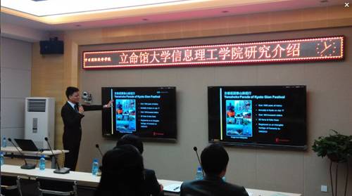 The meeting was held at C510 in the teaching building ofDevelopment Zone Campus. Li Liang, from School of Information of Ritsumeikan University, first introduced the research and major achievements of various disciplines in Ritsumeikan University.He put the “mountain spear parade”,supported by the Japanese Ministry of Education Fund, as the main line for his report, to integrate the research results of Ritsumeikan University in recent years. Under the guidance of the virtual reality technology, everyone seemed to be immersed in the real scene, experiencing the Japanese traditional culture parade.