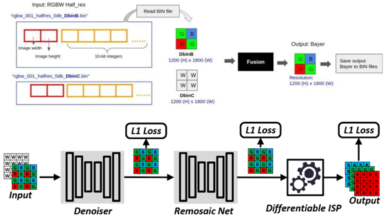 图1. RGBW数据联合重马赛克、去噪方案