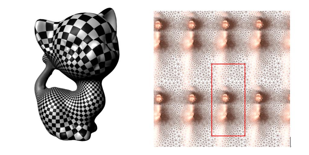 本次发表的论文是该项目的一项重要进展。这是在历史上首次将结构化网格生成与共形几何相联系,揭示了四边形网格和亚纯四次微分之间存在内在联系,用全纯线丛的示性类理论来解释网格奇异点构型。四边形网格诱导了曲面的共形结构和亚纯四次微分,四边形网格的奇异点对应于亚纯微分的极点和零点。该工作提出了通过构造相应的具有全局代数表示的亚纯四次微分来生成四边形网格,证明了四边形网格和亚纯四次微分的等价性。如何精确决定奇异点的位置和拓扑度是四边形网格生成的核心困难之一。该工作提出了验证四边形网格奇异点位置和拓扑度的理论和算法,证明了四边形网格的奇异点构型满足除子的阿贝尔-雅克比条件。本篇论文立意新颖,实质性地推进了四边形网格生成的基础理论发展,开辟了基于黎曼面理论生成网格的新方向,得到了审稿人的一致好评。