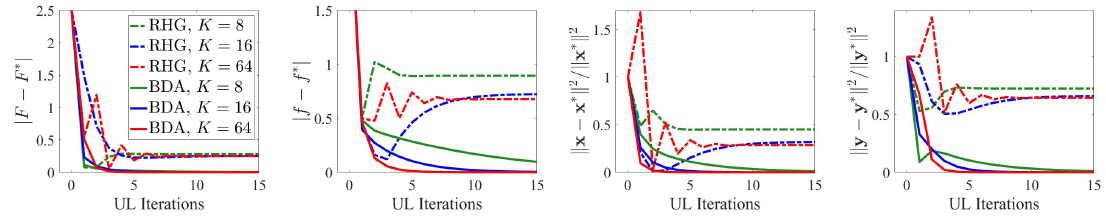 图2. 在不同下层迭代的情况下对比一阶BLPs算法的数值性能。