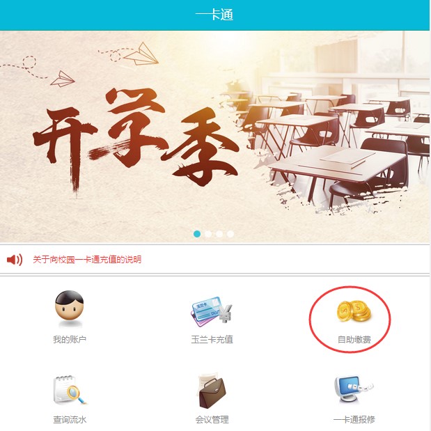 登录校园电子支付平台(登录“校园门户”“校内服务”栏目下的“校园电子支付平台”或者网址“http://ecardpayment.”)。