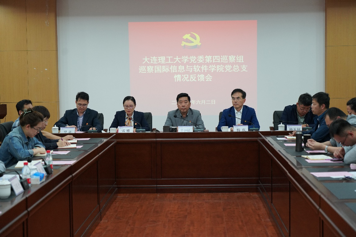6月2日,根据学校党委巡察工作统一部署,学校党委第四巡察组巡察大连理工大学-立命馆大学国际信息与软件学院党总支情况反馈会议召开。会前,巡察组已向国际信息与软件学院党政主要负责人和班子全体分别进行了反馈。会上,组长杨庆代表巡察组向国际信息与软件学院党总支反馈了巡察情况,校长助理罗钟铉代表学校党委对做好巡察整改工作提出要求,国际信息与软件学院党总支书记雷娜作表态发言。会议由国际信息与软件学院院长樊鑫主持。