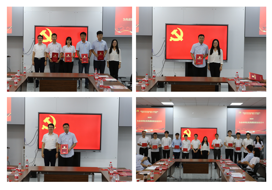 大会在庄严的国歌中启幕。在宣读学院党总支2019-2021年优秀共产党员、优秀党务工作者和先进基层党组织的表彰决定后,学院院长樊鑫、党总支书记雷娜为受表彰集体和优秀个人代表颁奖,并为全体师生党员颁发政治生日卡。