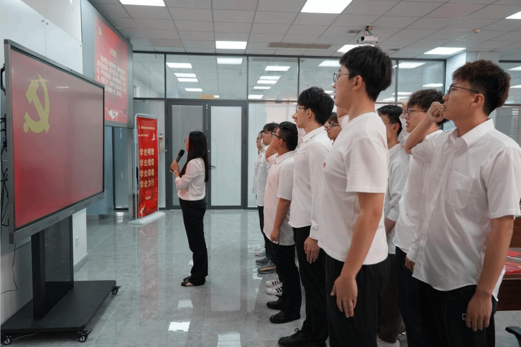 随后,学院师生党员进行了座谈交流,气氛热烈。其中夏秋粉老师讲述了幼时的艰苦生活,对比了党带来的当下的幸福生活,激动落泪,感叹了党的领导的正确性。雷娜书记回忆了2020年初她在美国时看到海外华人忧心国内疫情,购置机票只为运送防疫物资回国的场景,被国人的团结精神深深感动。在座的师生党员们也备受鼓舞,纷纷讲述了自己的入党初心与奋斗使命,学生党员们面向党旗,许下了自己的青春誓言,不忘初心、牢记使命,立志将赤诚初心融入到宏伟中国梦中,将奋斗热血挥洒在民族复兴路上。正如樊鑫院长所说,我们每个人都是平凡的个体,但在自己的岗位上做好自己的事,便是将小我的事业融入党的千秋伟业中,也是平凡中的不平凡。