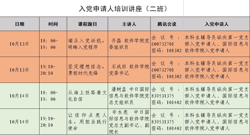 1.各基层党支部组织入党申请人填写附件:入党申请人培训报名表,于10月12日16:00前以支部为单位发送至邮箱pan@dlut.edu.cn。