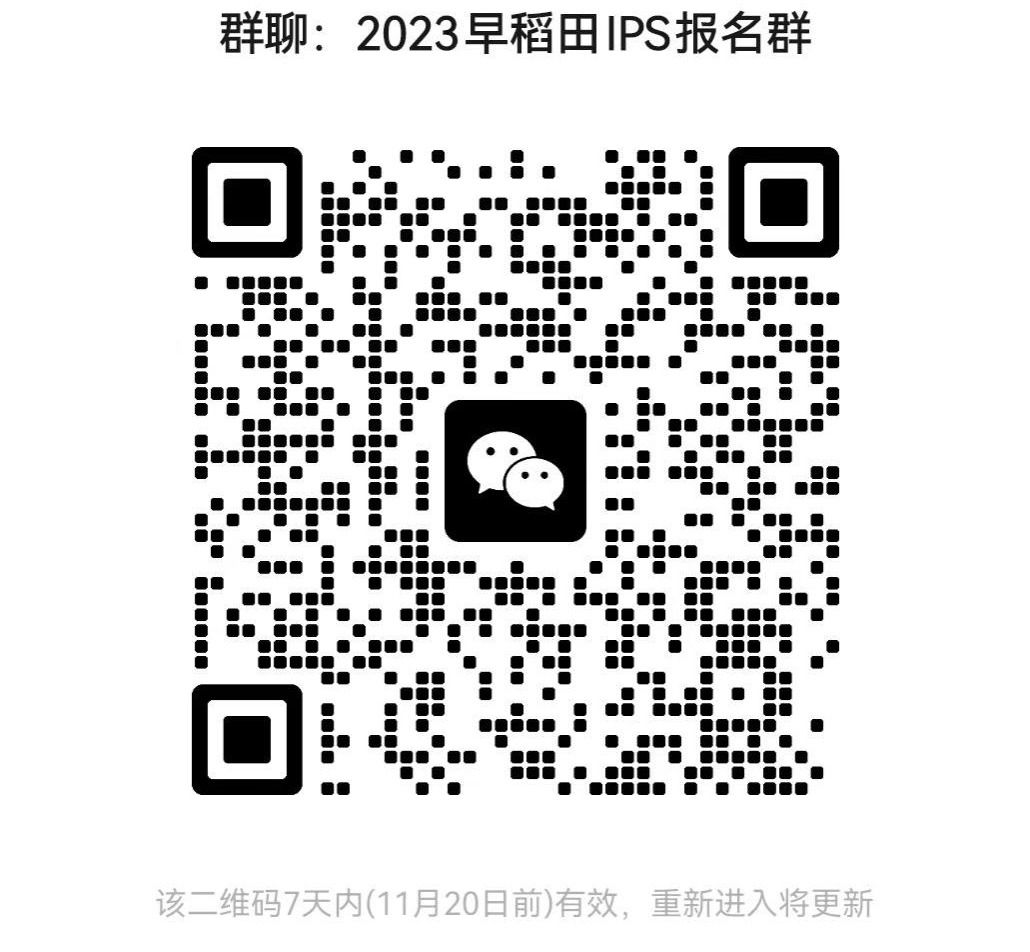 为帮助我校学生了解2024年入学的IPS研究生留学项目,早稻田大学将于2023年11月13日-11月15日,每天17:00-19:00(日本时间),以线上形式进行项目工作说明。