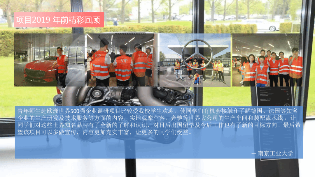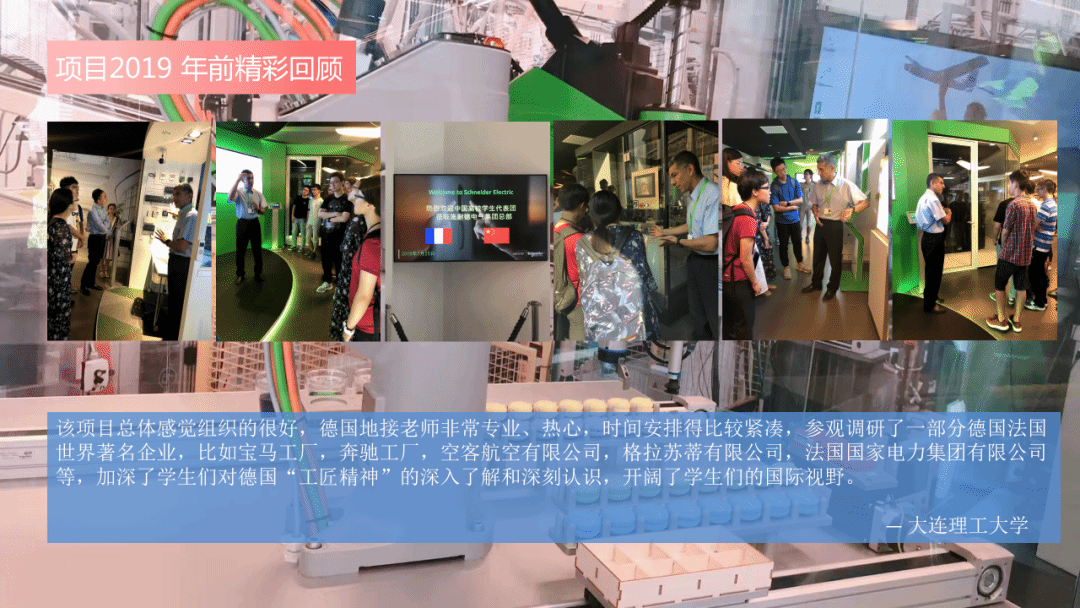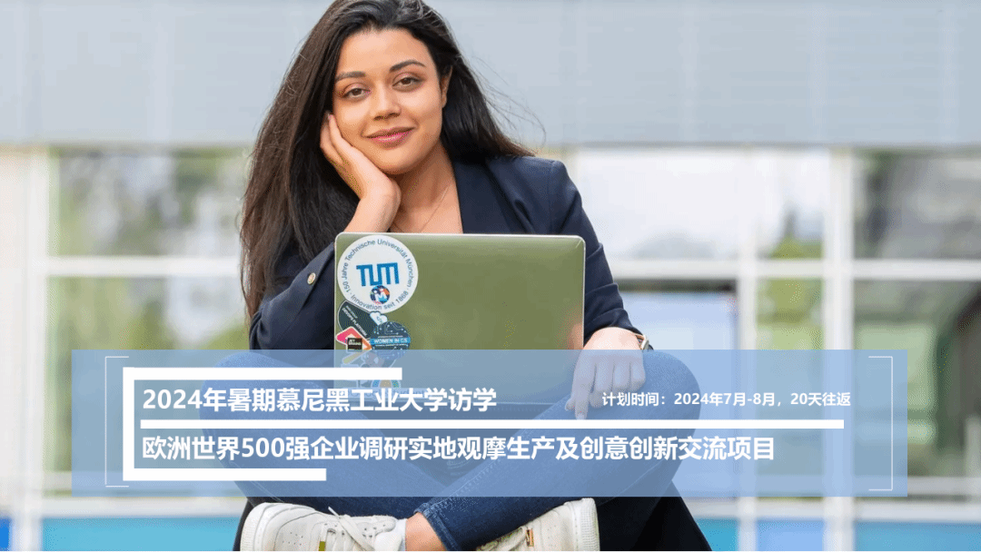 为进一步拓展在校大学生的国际化视野,响应教育部提出的对大学生创意创新要求,并配合 “中国制造2025” 国家战略计划实施,辅助高校培养具有国际视野、了解现代化国际规律的人才,2024暑期在国内高等院校组织优秀大学生赴德国慕尼黑工业大学访学及欧洲世界500强企业实地进行为期20天观摩调研活动。