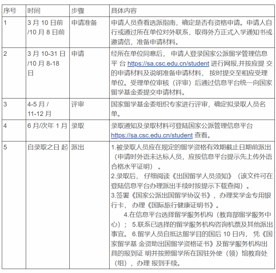 1. 选派类别及留学期限