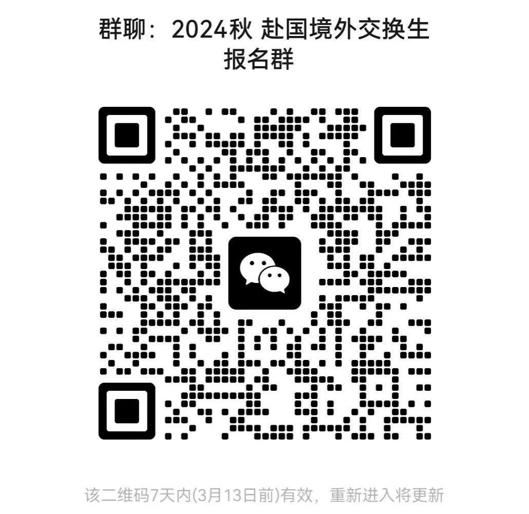 (3)提交材料后请进入“2024秋 赴国境外交换生报名群”微信群,关注后续通知。入群后请以“地区-申请学校-姓名”(例如:日本-东京大学-张三)备注名称。