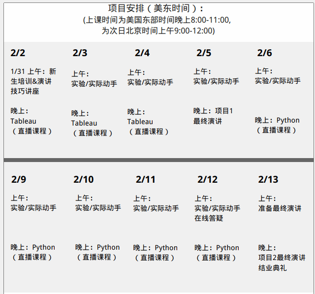 (一)项目时间:2025年1月31日-2月13日(上课时间为北京时间上午9:00-12:00)