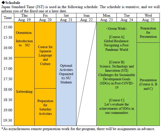 1、项目课表(当地时间JST)