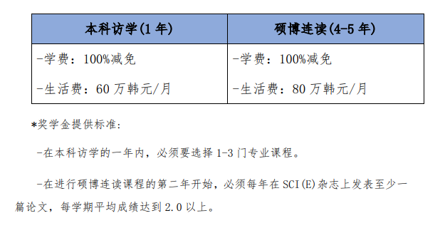 汉阳大学SESP项目为全额奖学金(学费+生活费)的访学项目。在大连理工大学与汉阳大学友好交流合作基础上,现针对我校优秀全日制本科大三工学专业学生进行招募。录取后学生可于汉阳大学ERICA校区进行一年的学习,毕业后若学生通过学院和教授的选拔,可入学硕博连读课程,同时获得百分百学费减免以及生活费补贴。
