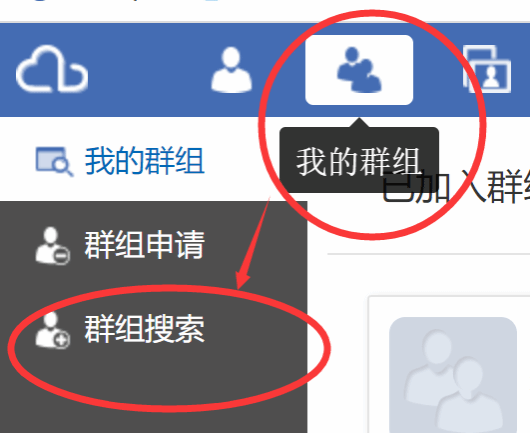 2、点击左上方“我的群组”图标,左侧群组搜索中输入“软国毕业设计管理”即可申请加入群组;