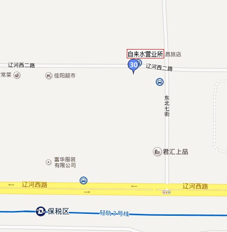路線1:2番バスに乗車し、“自来水营业所”(自来水営業所)バス停で下車する。10分くらい歩いて、軽軌“保税区”駅前で行って、軽軌に乗車する。