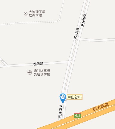 5路海贝广场(海貝広場)–---------------职业中专(職業中専、ソフトウェア学部の前)---------------大连大学(大連大学)